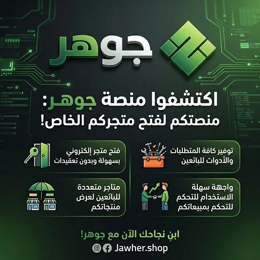 منصة جوهر للأزياء.. وجهتك الأولى للتسوق الإلكتروني في اليمن. نجمع لك نخبة من أرقى دور الأزياء والمصممين تحت سقف واحد. تشكيلات متنوعة من الملابس، الحقائب، والإكسسوارات التي تلبي كافة الأذواق والمناسبات. تسوق الآن واستمتع بتجربة فريدة مع خدمة التوصيل السريع وضمان الجودة." 👗👕👜👠👟👖